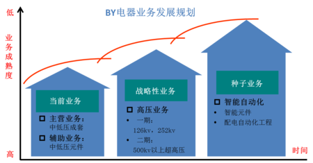 1、BY電器需以中低壓成套和中低壓元件為當前主營業(yè)務,并確立以高壓為戰(zhàn)略性業(yè)務,以智能自動化為種子業(yè)務的業(yè)務規(guī)劃,讓BY電器未來可持續(xù)性發(fā)展。