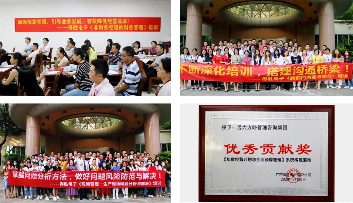 得勝電子與遠(yuǎn)大方略合作咨詢項(xiàng)目2期,并持續(xù)開展定制化專題培訓(xùn)。沉淀了一套人才培養(yǎng)復(fù)制模式,培養(yǎng)了經(jīng)營(yíng)管理核心團(tuán)隊(duì)8名,為企業(yè)高速發(fā)展奠定了人才基礎(chǔ);沉淀了一套年度經(jīng)營(yíng)目標(biāo)實(shí)現(xiàn)的經(jīng)營(yíng)管理系統(tǒng),極大地提升了資金周轉(zhuǎn)率和庫(kù)存周轉(zhuǎn)率,助力企業(yè)實(shí)現(xiàn)了營(yíng)業(yè)額和利潤(rùn)的雙增長(zhǎng)。