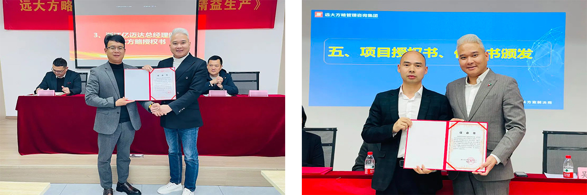 △胡總為遠(yuǎn)大方略精益變革項(xiàng)目組頒發(fā)授權(quán)書
