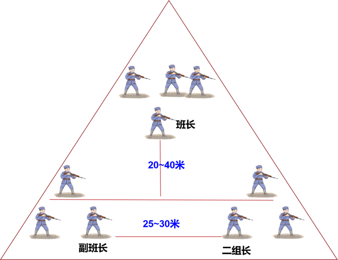 為了避免造成團(tuán)滅,畢竟戰(zhàn)士與戰(zhàn)士之間有一定的距離,因此就不會被榴彈等武器造成大面積傷亡。由于人數(shù)較少,且覆蓋面較大,這就給敵軍造成了火力盲點(diǎn),很大程度上減少了我軍戰(zhàn)士的傷亡,士兵存活率極大提高。三三制戰(zhàn)術(shù)中人和人的距離是7米,之所以要定在7米,主要是防止手榴彈來個(gè)“一鍋端”。而小組與小組之間的距離是20米到40米,這個(gè)距離,剛好又大于榴彈炮的殺傷半徑。