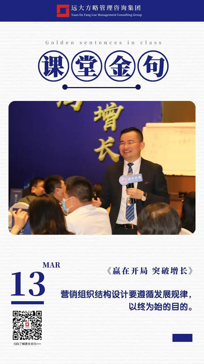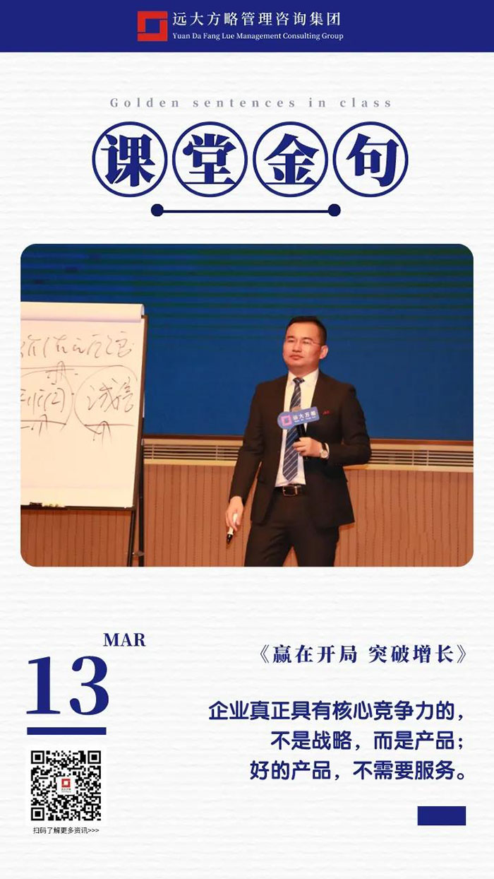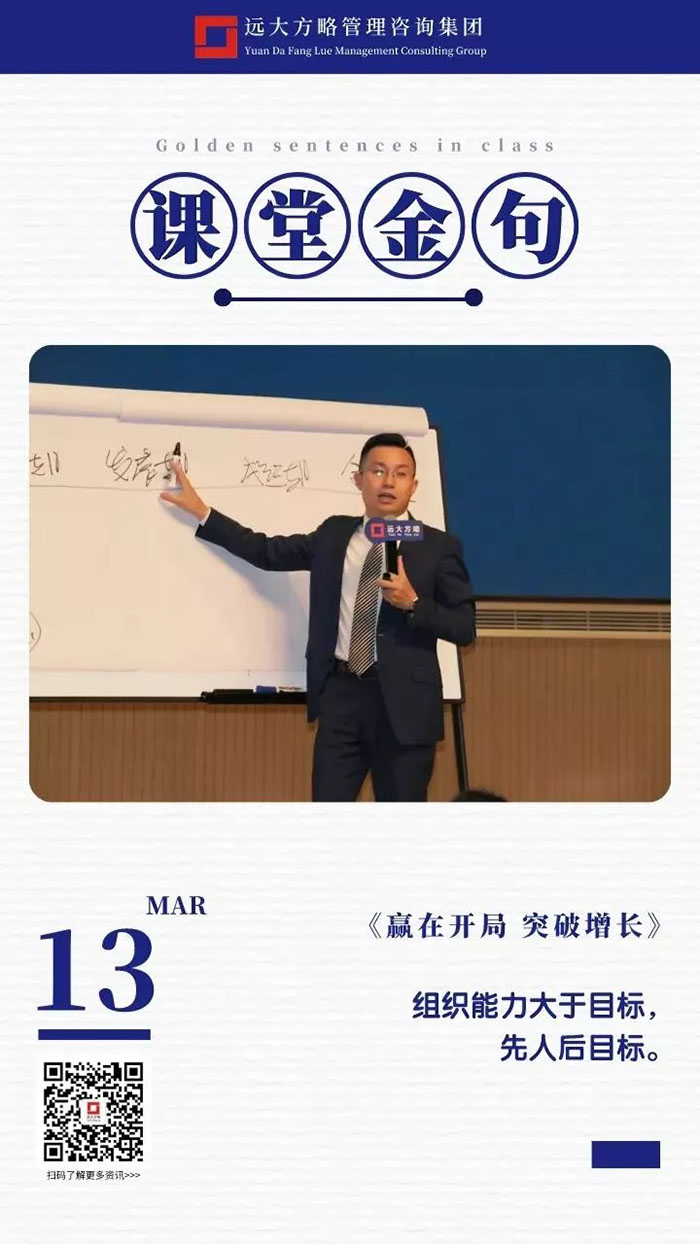 課上老師采用“道、法、術(shù)、器”相結(jié)合的形式給學(xué)員們帶來了一場(chǎng)精彩的知識(shí)盛宴。3月13日的課堂上兩位老師也總結(jié)了很多金句,可以很好的運(yùn)用到企業(yè)的經(jīng)營(yíng)管理中。為了幫助大家更好的吸收和鞏固兩天的學(xué)習(xí),小編整理了今天課程雷老師的部分金句分享給大家,希望能給大家?guī)砀鄦l(fā)。