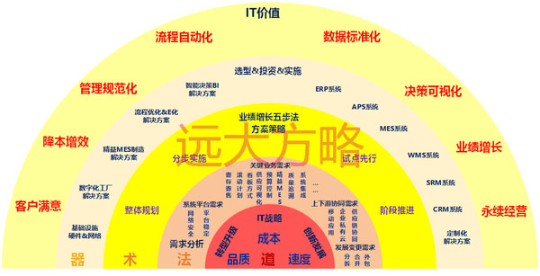 遠大方略智能制造信息化運用管理咨詢作為實施系統(tǒng)的指導思想,軟件為核心技術,為中國中小實體企業(yè)提供量身定制的行業(yè)解決方案,實現企業(yè)的策略:創(chuàng)新、速度、效率、品質、成本