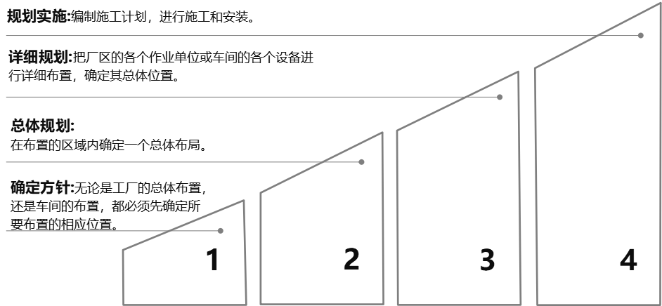 我們主要選取具代表性的布局方法--系統(tǒng)布置設(shè)計(jì)SLP法,通過(guò)如下階段的策劃與落地來(lái)開(kāi)展項(xiàng)目: