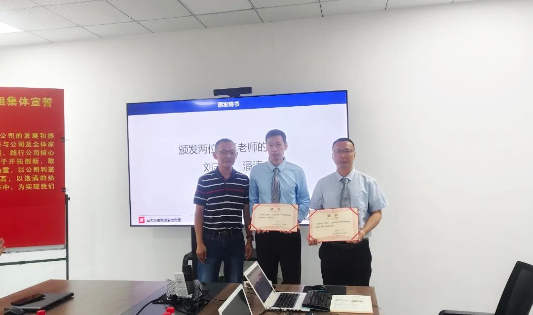 為促進(jìn)項(xiàng)目的有效落地,明確各崗位職責(zé),強(qiáng)化責(zé)任意識(shí),會(huì)上陳總為遠(yuǎn)大方略項(xiàng)目組頒發(fā)授權(quán)書,為項(xiàng)目組老師頒發(fā)了聘書。