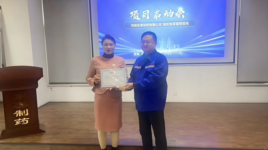 為促進(jìn)項(xiàng)目的有效落地,明確各崗位職責(zé),強(qiáng)化責(zé)任意識(shí),會(huì)上東泰制藥苗董向遠(yuǎn)大方略項(xiàng)目組頒發(fā)了授權(quán)書(shū),馬總為各位老師頒發(fā)了聘書(shū),此次授權(quán)和任命不僅體現(xiàn)了東泰制藥對(duì)咨詢(xún)團(tuán)隊(duì)的高度信任,也彰顯了公司破除阻力、推動(dòng)變革的決心。