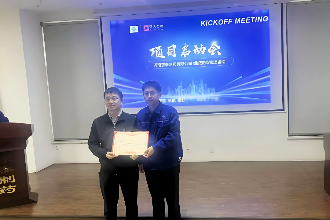 近日,河南東泰制藥有限公司(以下簡(jiǎn)稱(chēng)“河南東泰制藥”)攜手遠(yuǎn)大方略啟動(dòng)《組織優(yōu)化管理變革》咨詢(xún)項(xiàng)目,構(gòu)建更加科學(xué)合理的組織架構(gòu),提升跨部門(mén)協(xié)作能力,完善薪酬與績(jī)效體系,充分激發(fā)員工的工作積極性與創(chuàng)造力,全面優(yōu)化運(yùn)營(yíng)流程,降低內(nèi)耗、提升效率,構(gòu)建能夠支撐企業(yè)持續(xù)發(fā)展的組織能力,為企業(yè)的長(zhǎng)遠(yuǎn)發(fā)展奠定堅(jiān)實(shí)基礎(chǔ)。