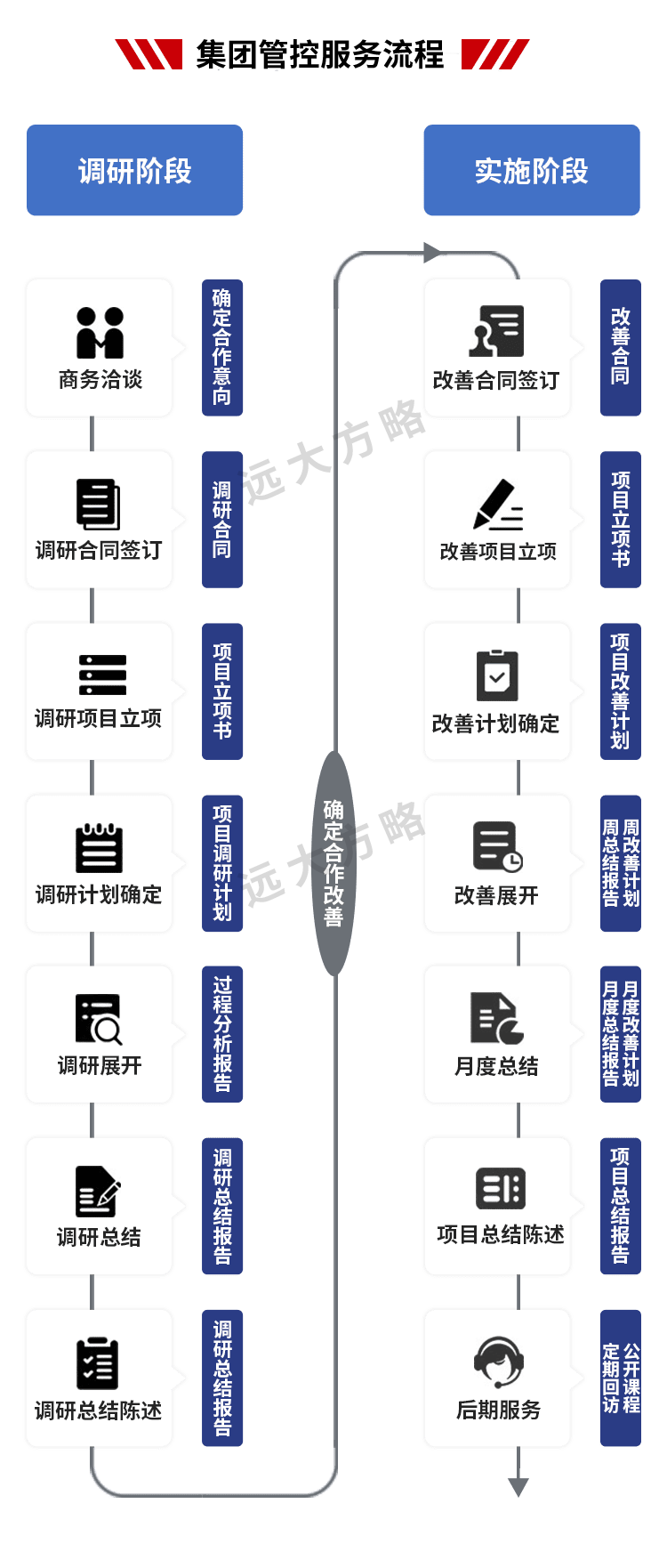 遠(yuǎn)大方略始終遵循不了解不理解企業(yè)的前提下絕不輕易下結(jié)論,正式制定改善方案前必須深入到業(yè)務(wù)一線了解和理解企業(yè)的運(yùn)營(yíng)情況。